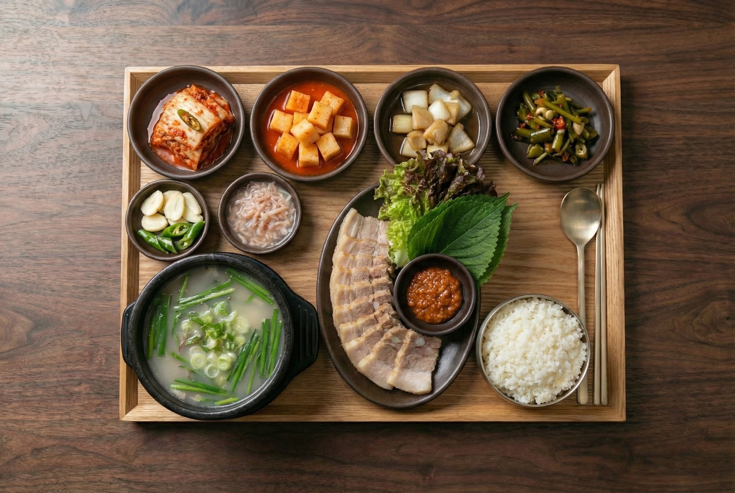 일관된 톤앤매너의 베리에이션: 대표 메뉴인 돼지국밥부터 얼큰국밥, 수육보쌈 등 다양한 메뉴에 걸쳐 붉고 진한 색감과 묵직한 대비(Contrast)를 유지하여 강력한 브랜드 통일성을 구축했습니다.