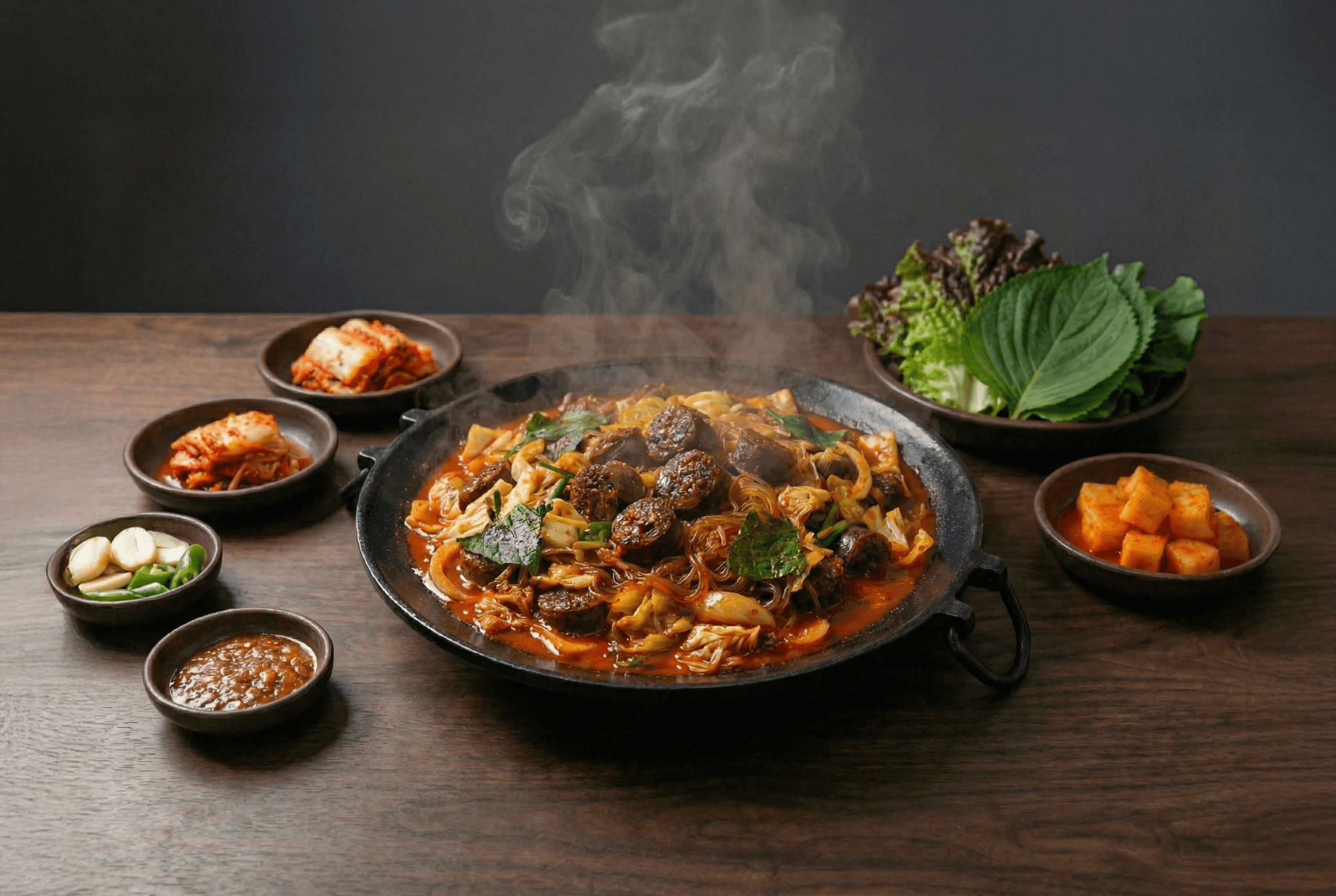 역동적인 스팀 연출: 일반적인 촬영보다 더 높은 온도를 유지하고 조명을 세밀하게 조정하여, 뚝배기에서 폭발하듯 치솟는 김의 순간을 포착, '진격'의 에너지를 직관적으로 전달했습니다.