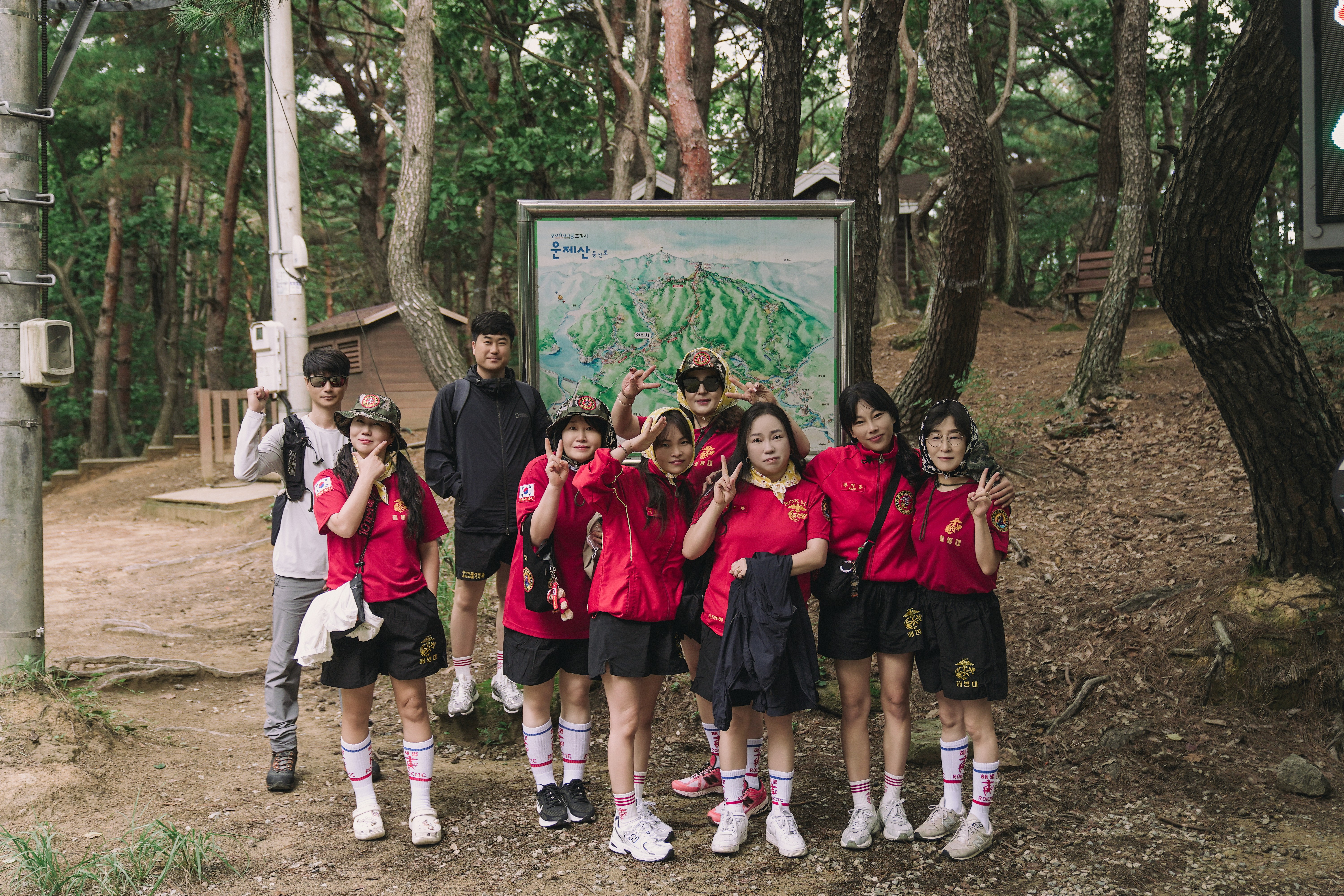 Candid Moments: 포즈를 취하기 힘든 산행 특성상, 서로 손을 잡아주거나 땀을 닦아주는 자연스러운 '전우애와 가족애'의 순간을 놓치지 않고 포착했습니다.