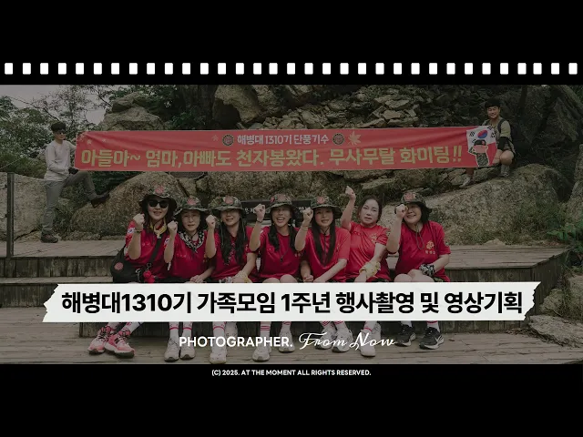 해병대 1310기 입대 1주년을 맞아 진행된 '천자봉 등반'은 단순한 체육 행사가 아닌, 해병대 가족으로서의 자부심을 확인하는 상징적인 이벤트였습니다. 앳더모먼은 산행이라는 특수한 환경 속에서, 참여자들의 안전을 방해하지 않으면서도 등반의 시작부터 정상 정복까지의 전 과정을 빠짐없이 기록하는 '로드 다큐멘터리(Road Documentary)' 형식의 촬영을 진행했습니다.