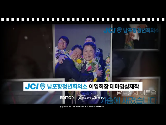 본 프로젝트는 2025년 남포항청년회의소(JC)를 이끌어온 최정윤 회장의 이임식을 기념하기 위해 기획되었습니다. 지역 사회를 위해 쉼 없이 달려온 리더의 발자취를 단순 기록을 넘어선 '작품'으로 승화시키는 것이 이번 프로젝트의 핵심 목표였습니다. 앳더모먼은 그의 리더십이 시작된 구룡포의 상징성과 지난 1년의 성과를 결합하여 깊은 울림이 있는 기념 영상을 제작했습니다.