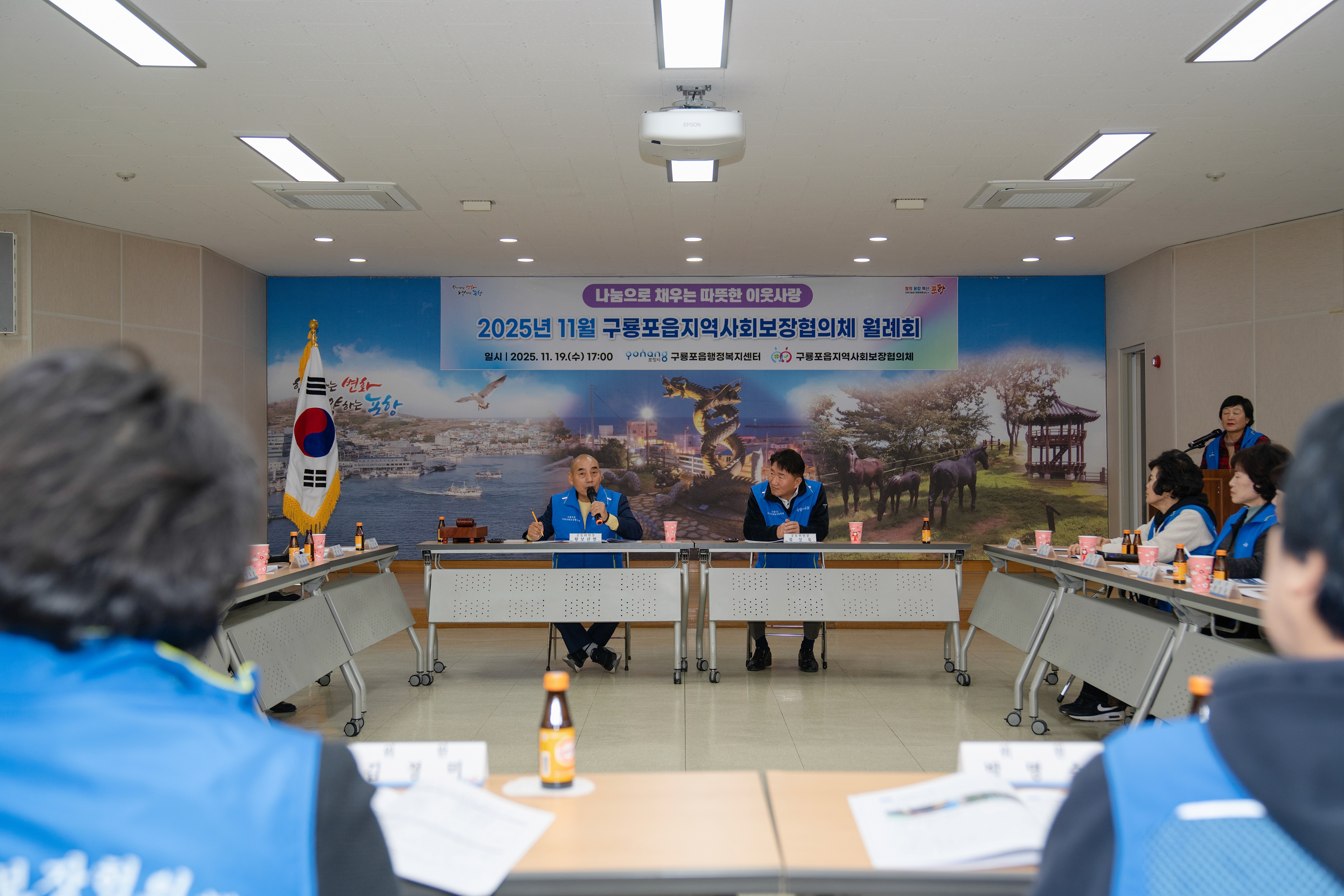 구룡포읍행정복지센터에서 열린 지역사회보장협의체 11월 정기회의 현장을 앳더모먼이 기록했습니다. 20여 명의 위원들이 모여 취약계층 김장 지원과 돌봄 사업을 논의하는 진지하고도 따뜻한 소통의 순간을 담았습니다.