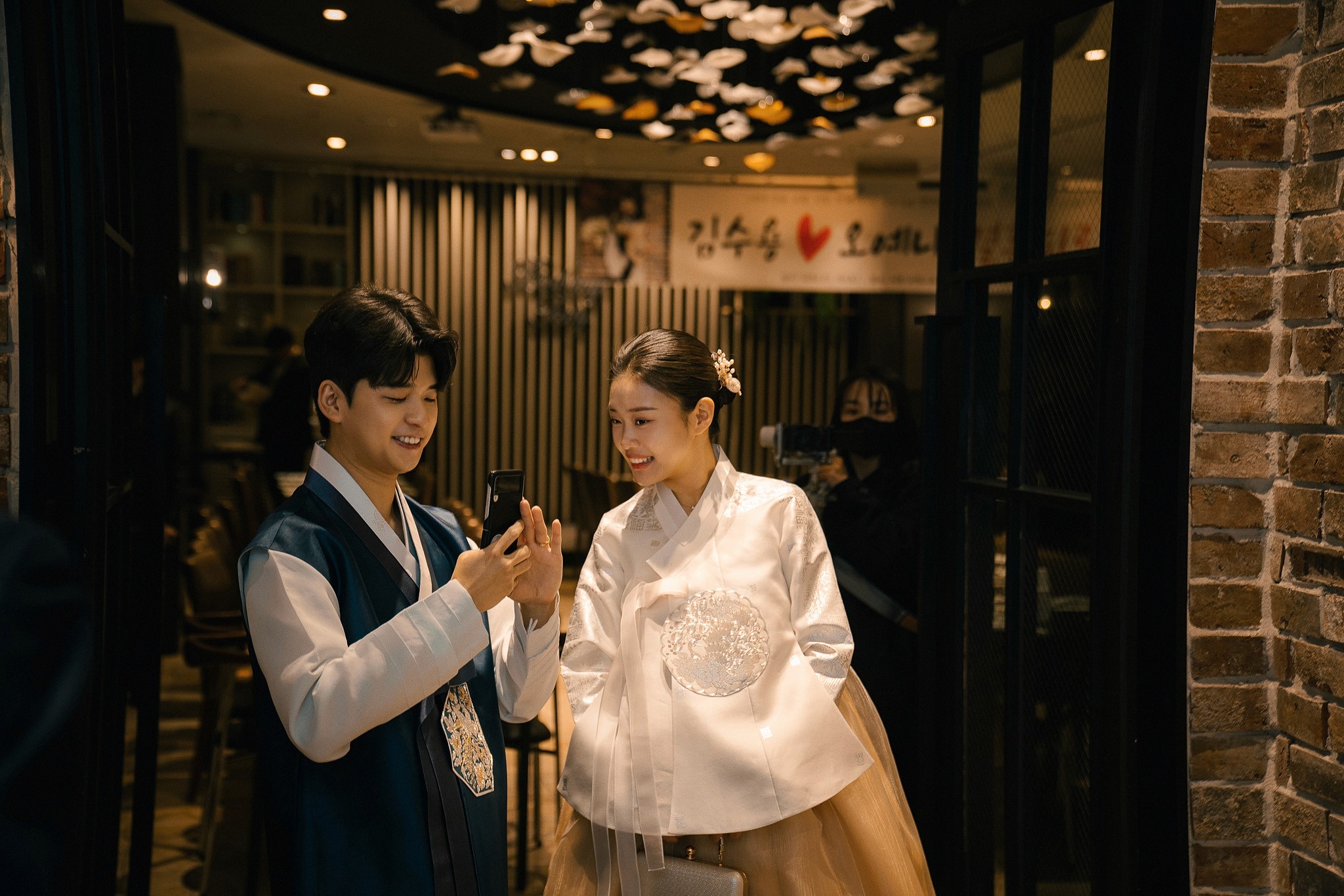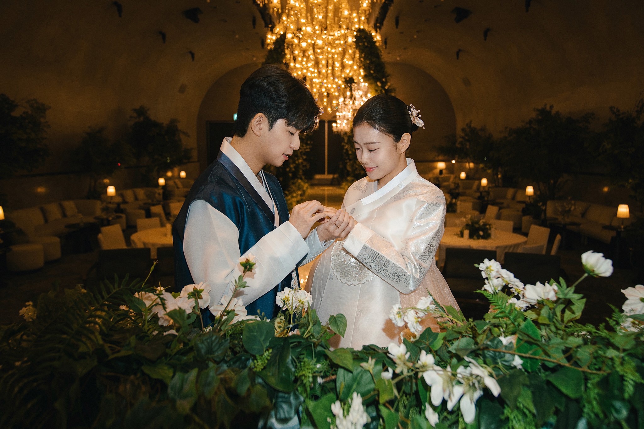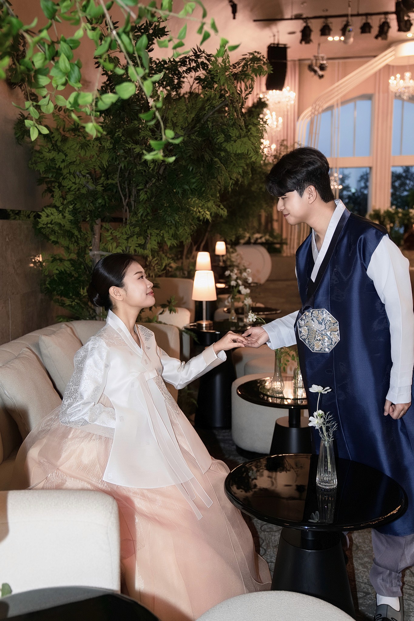 Photo (Hanbok Mood): 더 퀸 포레스트의 은은한 조명 아래서 한복의 고운 색감과 질감이 돋보이도록 화이트 밸런스를 정교하게 튜닝하여 촬영했습니다.