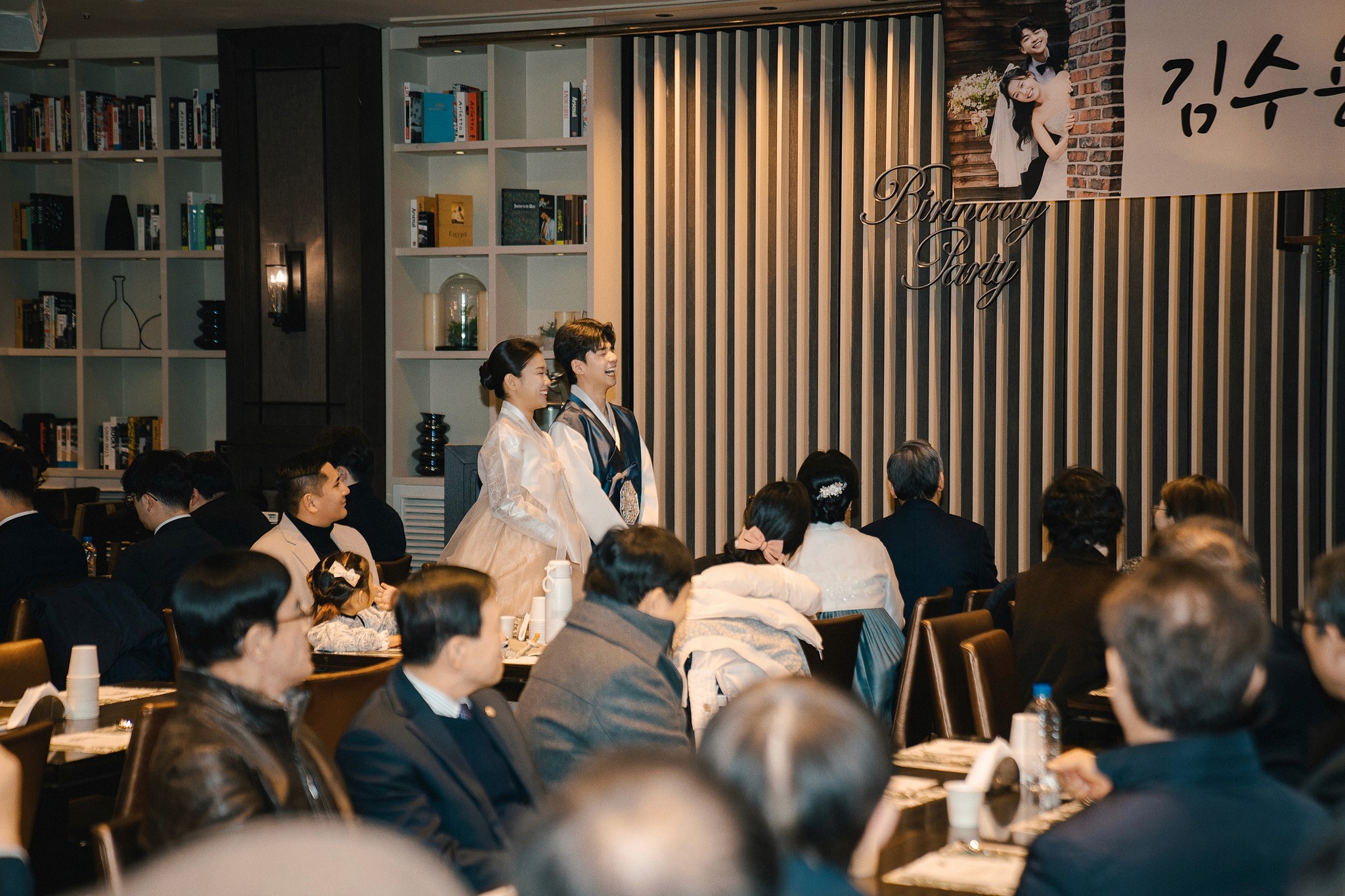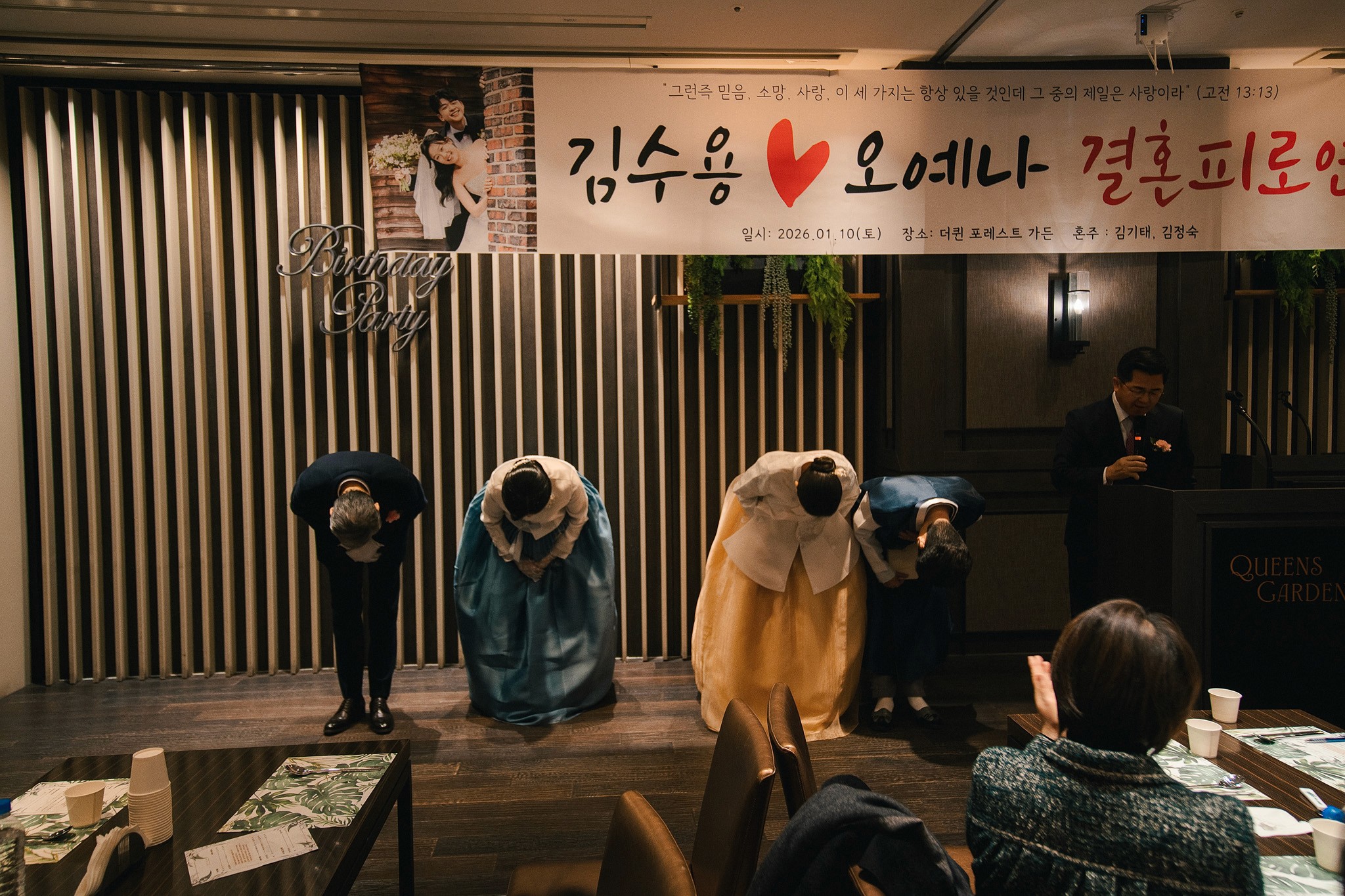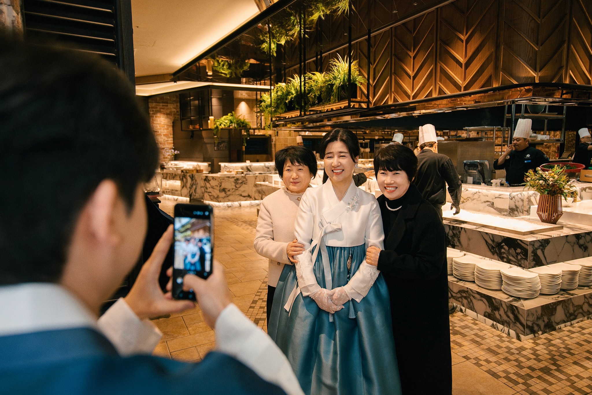 포항의 랜드마크인 더 퀸 포레스트(구.UA컨벤션)에서 진행된 이번 프로젝트는 단순한 피로연 스냅을 넘어선 '토탈 아카이빙(Total Archiving)'이었습니다. 앳더모먼은 신랑 신부님의 고운 한복 자태와 하객들의 축하가 어우러진 현장을, 순간을 포착하는 '사진'과 흐름을 담는 '영상' 두 가지 언어로 완벽하게 기록했습니다.