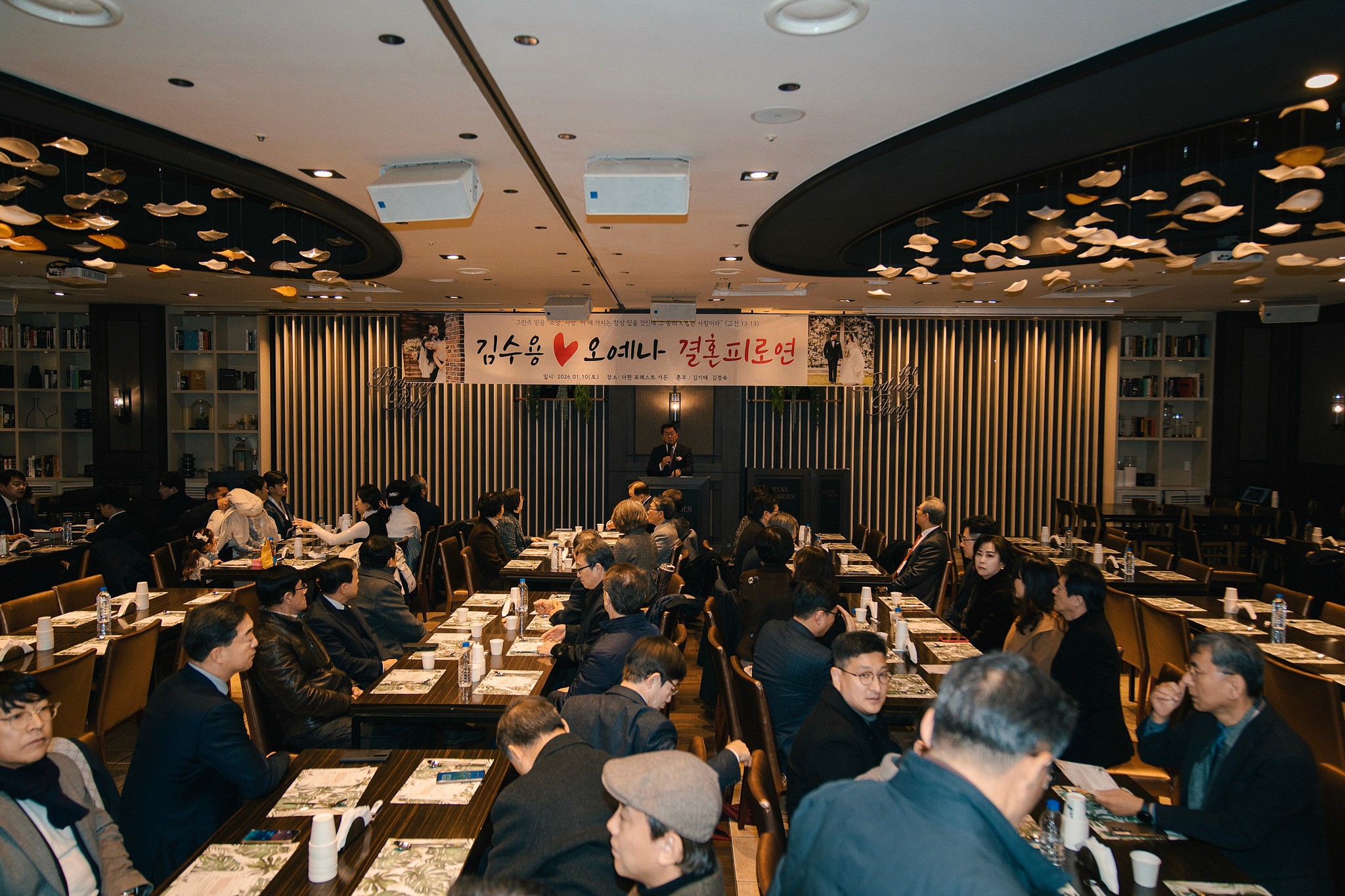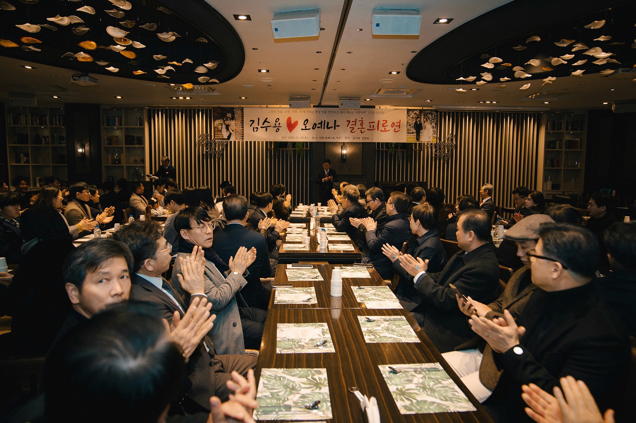 Challenge: 피로연장은 인파가 몰리고 동선이 복잡하여, 사진과 영상 작가가 서로의 앵글을 방해하지 않고 동시에 촬영하는 것이 매우 까다롭습니다.