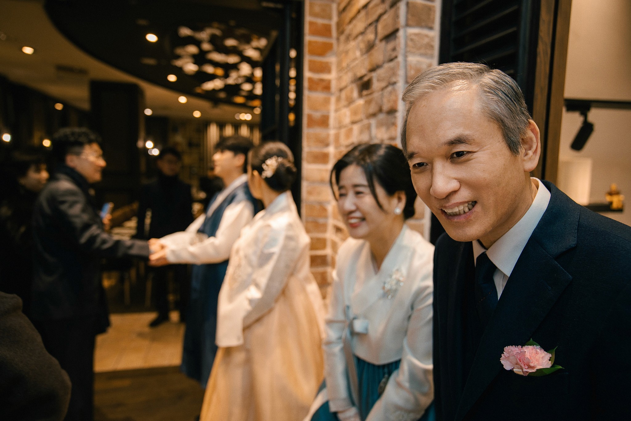 Solution: 앳더모먼은 사진과 영상을 한 팀으로 운영하여 서로의 동선을 완벽하게 파악하고 배려했습니다. '중요한 순간을 놓치지 않는다'는 원칙 아래, 영상이 전체적인 분위기를 담는 동안 사진은 찰나의 표정을 잡는 식의 유기적인 협업으로 빈틈없는 기록을 완성했습니다.