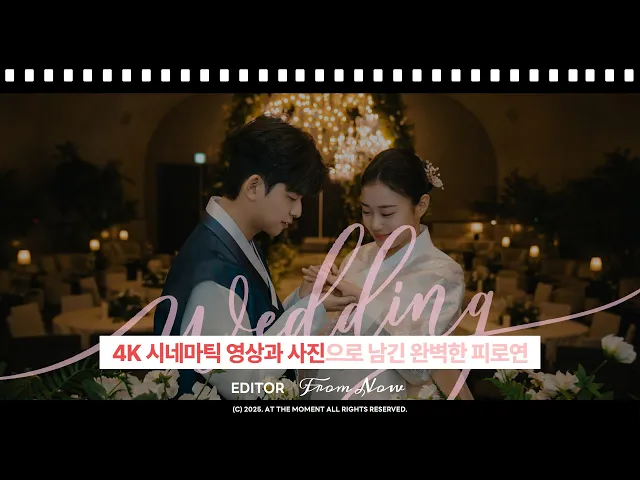 남는 건 사진과 영상뿐이라는 말이 있습니다. 하지만 그 결과물의 퀄리티와 데이터의 활용도는 천차만별입니다. 앳더모먼은 4K 영상의 생생함과 RAW 파일의 디테일을 모두 드립니다. 평생 간직할 소중한 날, 화질 타협 없이 가장 완벽한 형태로 소장하고 싶다면 앳더모먼을 선택하세요.