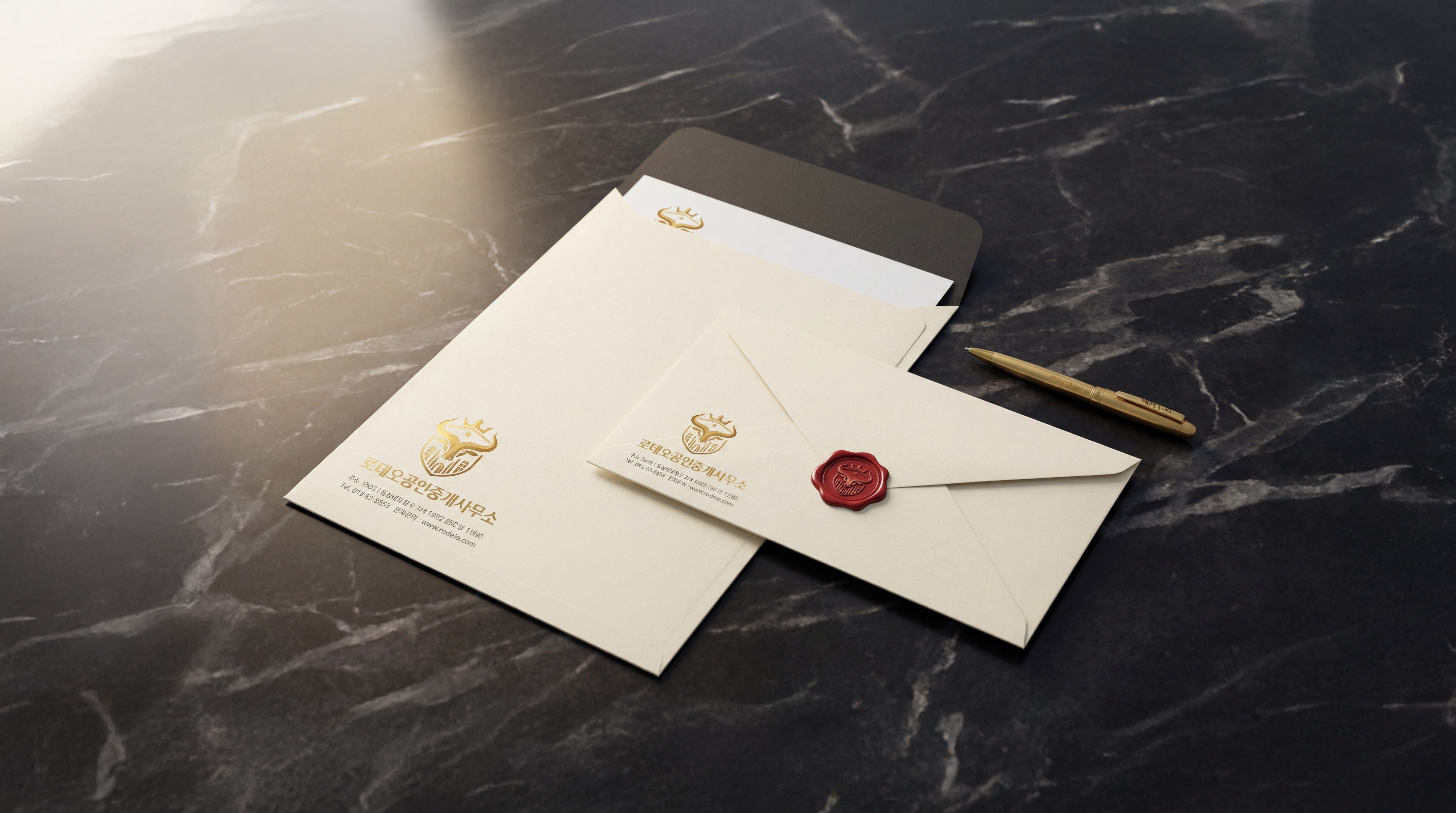 Application Design: 로고 디자인에 그치지 않고 간판, 명함, 봉투, 계약서 파일 등 실무에 필요한 모든 어플리케이션에 일관된 톤앤매너를 적용하여 브랜드 경험을 통일했습니다.
