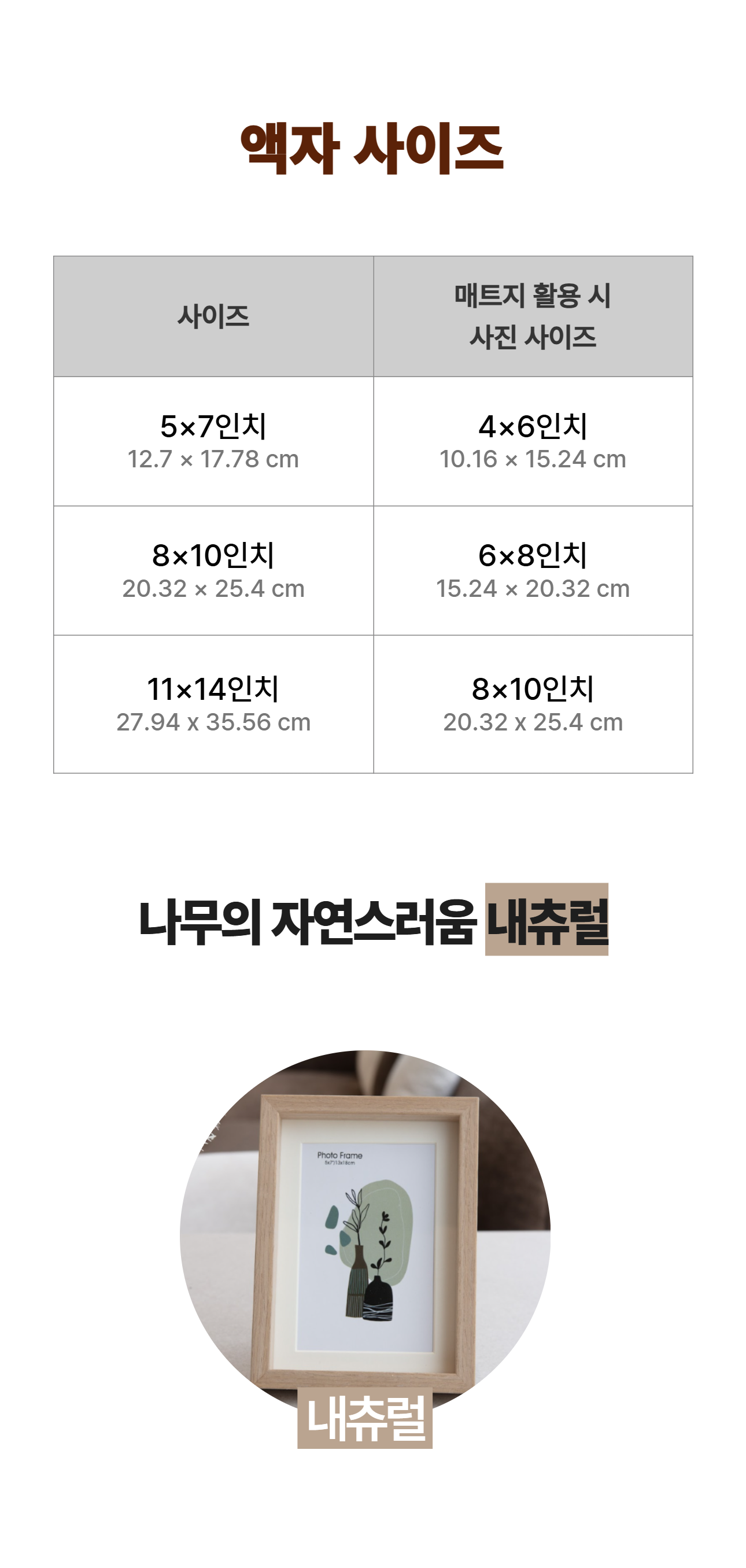 내츄럴 나무액자 사이즈 3종(사진출력포함상품)