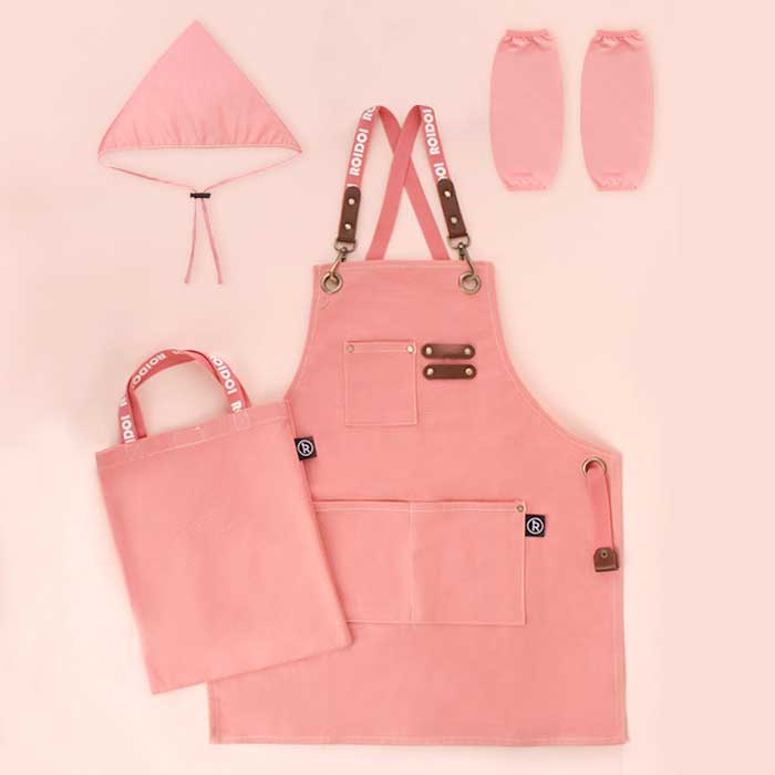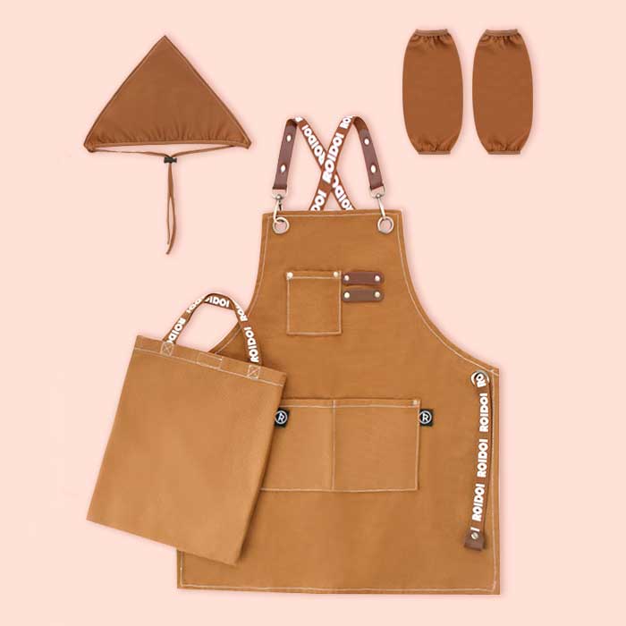 미술 혹은 요리 활동에 사용할 수 있는 캔버스 앞치마 세트입니다. 두건과 팔토시와 함께 보관할 수 있는 가방도 있답니다. 활용도와 가성비 모두 최고에요.